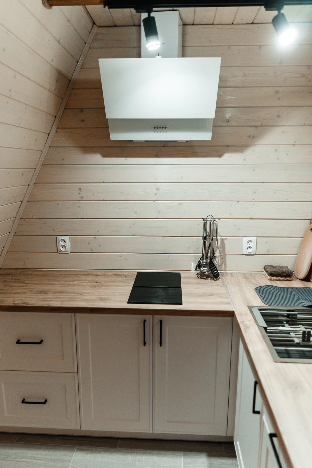 • кухонна зона: холодильник, електроплита, чайник, набір посуду.